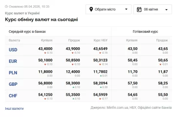 Курс валют станом на 6 квітня 2026 року